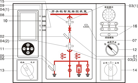 RM-KZA01開關(guān)柜智能操控裝置,產(chǎn)品功能強大,使用于3KV-35KV 戶內(nèi)開關(guān)柜,中置柜、手車柜、固定柜、環(huán)網(wǎng)柜等多種開關(guān)柜。具有動態(tài)一次模擬圖、高壓帶電顯示、自動加熱除濕數(shù)據(jù)顯示及控制、斷路器分合狀態(tài)指示、儲能指示、接地開關(guān)狀態(tài)指示、小車位置指示、分合閘回路完好指示、人體感應(yīng)及柜內(nèi)照明以及無線測溫功能、語音防誤提示等功能,可取代現(xiàn)有的一次回路模擬圖、帶電顯示器、自動加熱除濕控制器、斷路器分合按鈕等。并且具有RS485通訊接口,通訊協(xié)議為MODBUS通訊協(xié)議,能夠使開關(guān)柜進一步智能化,網(wǎng)絡(luò)化,數(shù)字化,方便廣大用戶使用與操作。