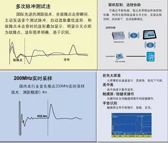 ⑴故障測距(預(yù)定位)方法:①提供低壓脈沖法(內(nèi)含比較法)②脈沖電流法。