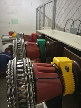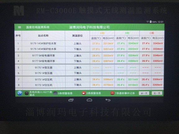 9月17日下午到達(dá)**能源公司,這個測溫系統(tǒng)需要安裝的有180個測溫點,2臺RM-C3000G接收主機(jī)和 1臺RM-C3000E接收主機(jī)。本次工程訂貨安裝非常緊急,客戶要求所有測溫點必須在19日0時前安裝完成。其中有5個柜子特別緊急必須在17日21時點之前必須完成。根據(jù)客戶要求進(jìn)行柜號排列,并做記錄,然后按順序找出10KV配電室這5個開關(guān)柜對應(yīng)的測溫點序號進(jìn)行安裝。小車推出后發(fā)現(xiàn)觸頭為倒錐形,合金片收緊困難,溫度探頭難以安裝,施工人員克服種種困難,保質(zhì)保量并提前2小時完成,主機(jī)全部接收到已安裝探頭的溫度數(shù)據(jù)。